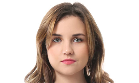 Keep it up! Let's try one from the side. Turn to your left and take another shot without smiling. Do your best to match the photo below.